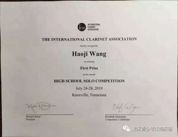 美国时间2019年7月26日下午,由国际单簧管协会举办的世界青少年单簧管比赛在美国田纳西大学音乐学院落下帷幕,来自中央音乐学院附中的王昊基同学作为全世界六名进入比赛决赛的选手之一,技压群雄、勇得桂冠获得第一名!